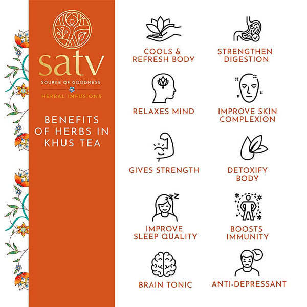 • For Herbal Water: Mix 1 tablespoon (or 2-3 teabags) of Satv Khus Tea in 1-liter water. Boil it for 2 minutes, strain & let it cool.