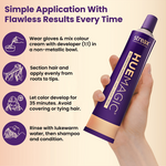 • Preparation: Wear gloves. Mix Huemagic® Hair Colour Cream with developer in a 1:1 ratio in a non-metallic bowl. Note: Use immediately; avoid storing mixed product.