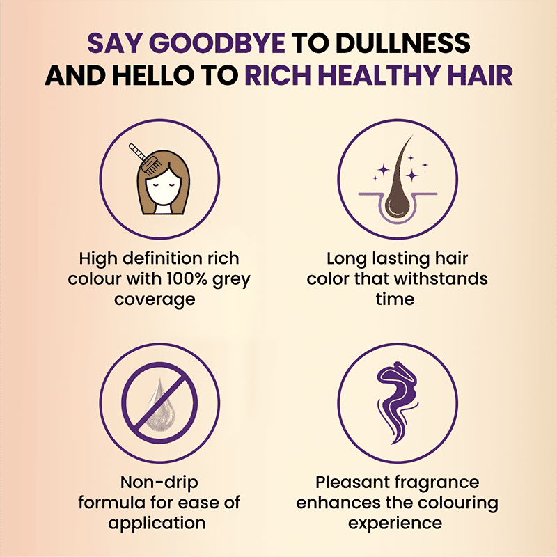 • Mixing & Development: Let the mixture develop on the hair for 35 minutes. Avoid covering the head, using a blow dryer, or tying hair in a bun during this time to prevent uneven colour.