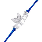 • Tell your brother just how much you love him and add a touch of edgy coolness to Raksha Bandhan this year with this striking Bhai rakhi, which has been given a stunning white rhodium plating with thread detail.