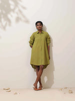 trueBrowns Pear Green Cotton Linen Dress - Distacart