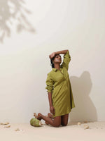 trueBrowns Pear Green Cotton Linen DressDescription Elevate your style with this pear green shirt dress with maroon trim details. It's an ideal ble...