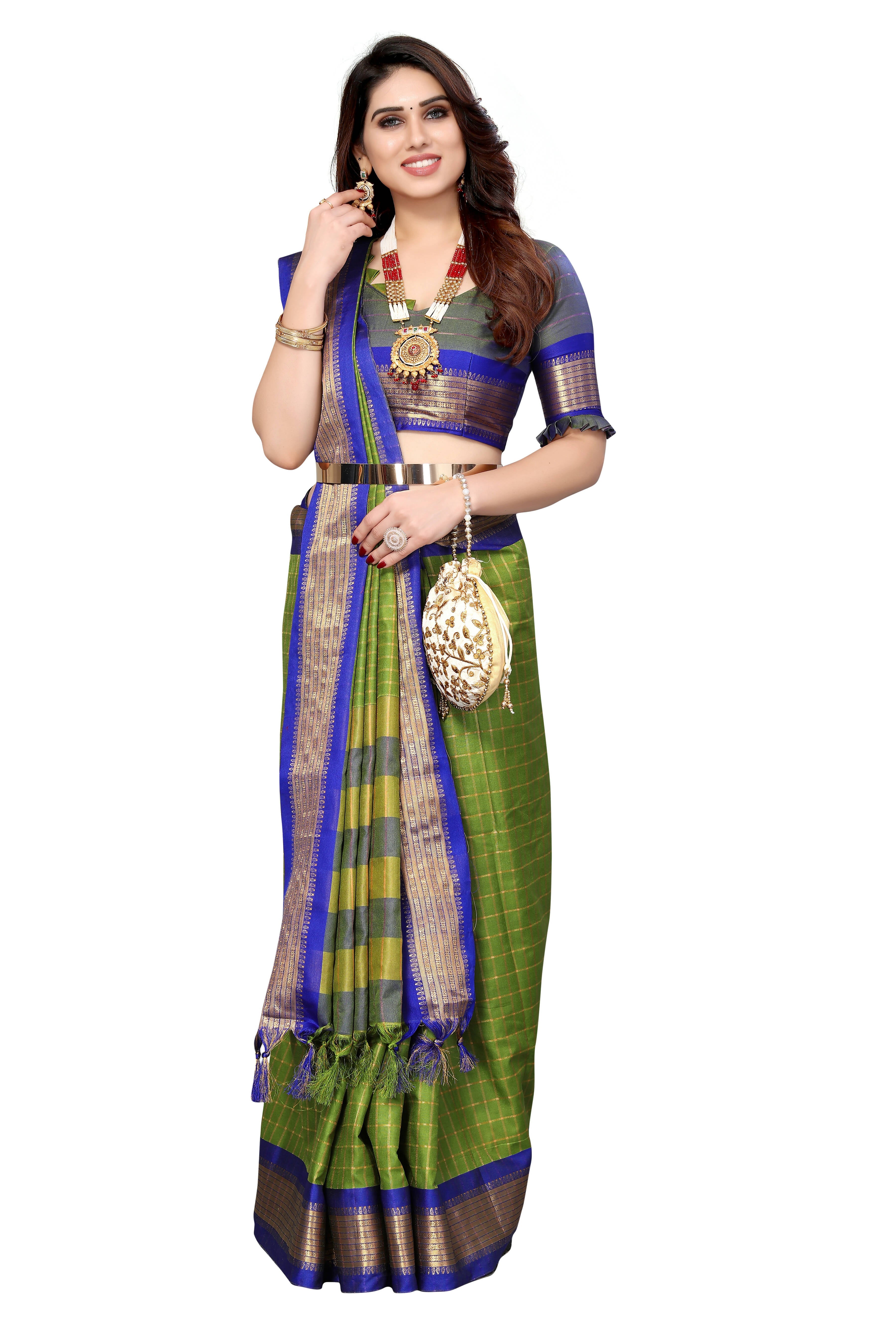 Vamika Weaving Parrot Green Cotton Silk Saree
