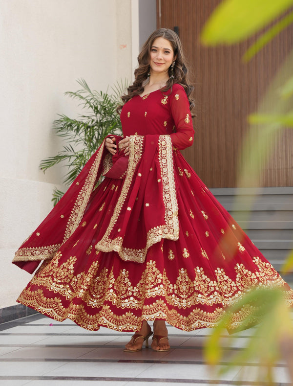 Vedant Vastram Georgette Embroidery & Sequence Work Stitched Ethnic Gown-Maroon