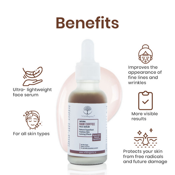 Wild Organic Natural Face Serum Raw CoffeeAbout The Product:Wild Organic Coffee Bean Scrub gives you 3-in-1 benefits: it can be used as a multipurp...