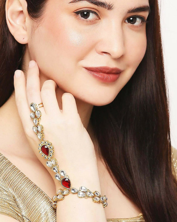 Joban Fashion Gold Polished Kundan Bracelet Color : Red Base Material : Brass Remarks : Slight Color Variation possibleLegal Disclaimer :Product co...