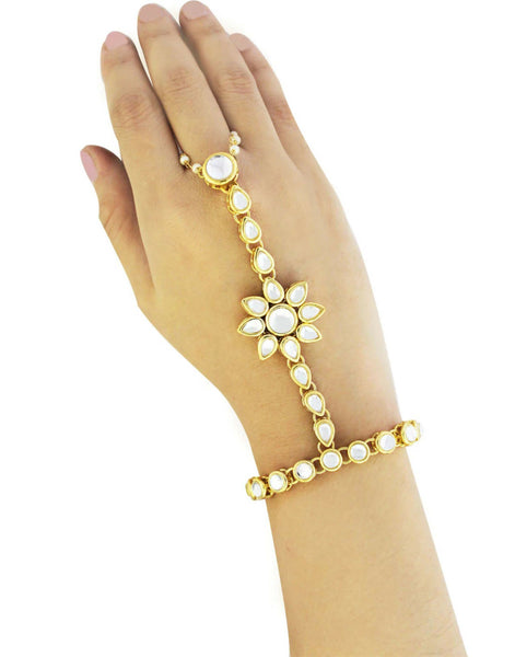 Joban Fashion Gold Polished Kundan Pearl Chain Hathphool