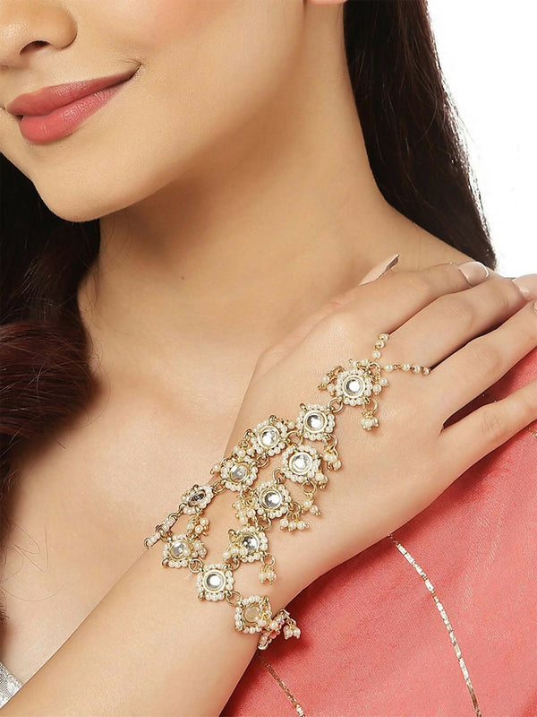 Joban Fashion Pink Kundan Gold Polished Hathphool - Defaut Title