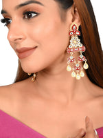 Shoshaa Red Contemporary Drop Earrings Product Details Red contemporary drop earrings, gold-plated, has kundan Secured with a post and back ...