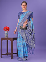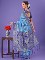 Astita Blue & Navy Blue Lichi Silk Saree with Rich Woven Border and Zigzag Pattern - Wedding & Festive Wear
