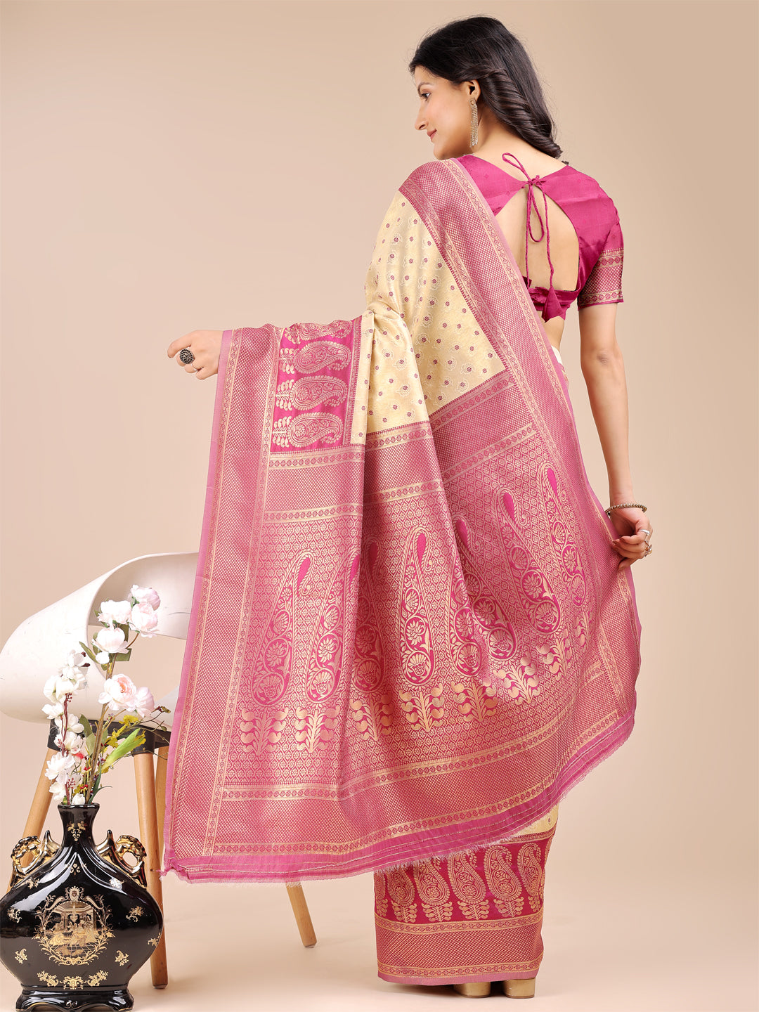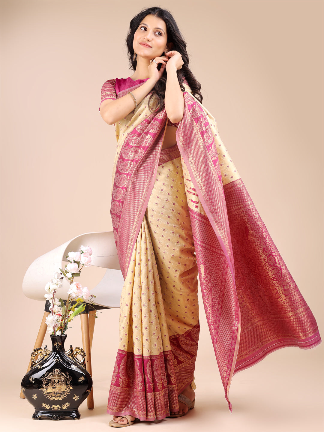 Astita Cream & Magenta Banarasi silk Woven Zari Work Traditional Tassel Saree - Distacart