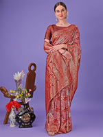 Grace meets grandeur with this luxurious Red Lichi Silk Saree featuring intricate floral zari weaving throughout. Made from premium-quality silk blend, this saree exudes richness and tradition, perfect for festive occasions, weddings, and special events. The broad zari-woven border and ornate pallu with tassels add a royal finish to your ethnic look. Lightweight and easy to drape, this saree is accompanied by a matching blouse piece for a complete, sophisticated ensemble.