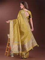 Astita Graceful Mustard Organza Saree with Rich Golden Zari Border | Elegant Party Wear Saree with Blouse Piece