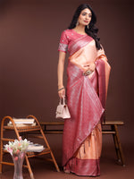 Astita Graceful Orange & Maroon Banarasi Silk Saree with Rich Zari Woven Border - Traditional Elegance for Celebrations - Default Title