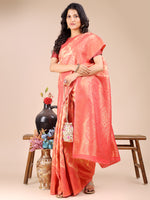 Astita Peach Banarasi silk Woven Zari Work Traditional Tassel Saree