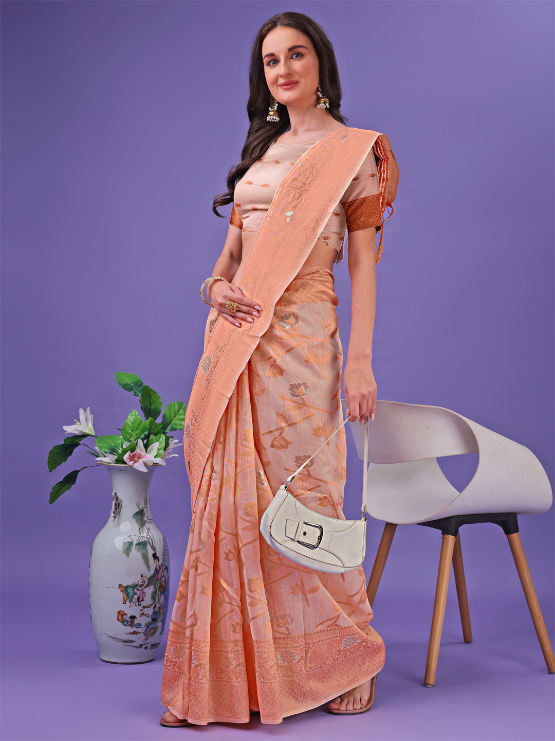 • Saree Color: Peach