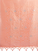 Step into elegance with this soothing Peach Lichi Silk Saree, beautifully woven with subtle floral patterns. Crafted from premium-quality Lichi silk, this saree offers a soft, luxurious drape that’s perfect for festive occasions, weddings, and traditional events. The elegant pallu with fine woven designs and delicate tassels adds a graceful charm, while the matching blouse piece completes the ensemble. Light, comfortable, and effortlessly stylish, this saree is a must-have for the modern woman who loves tradition with a fresh twist.