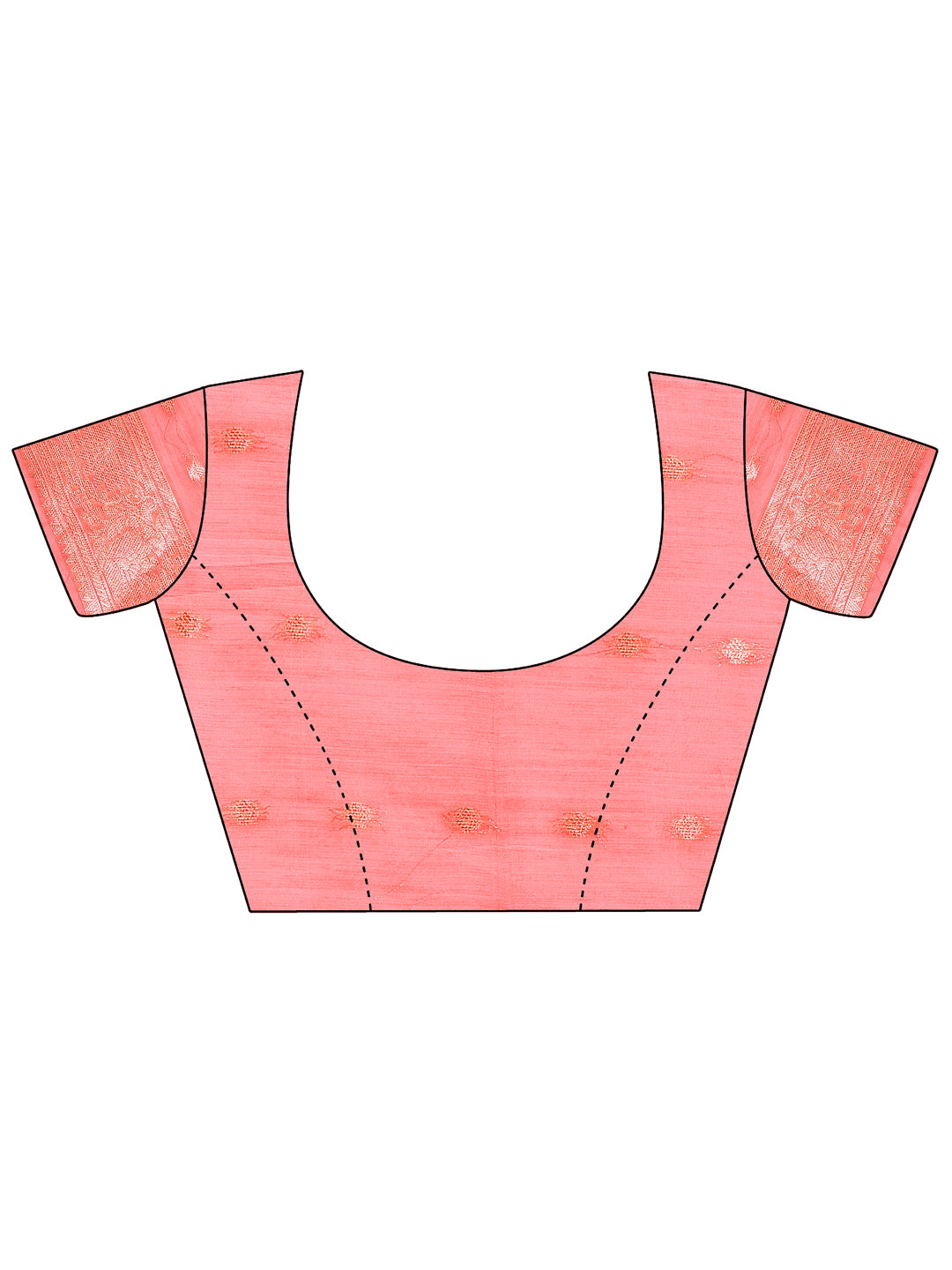 Astita Peach Pink Linen Cotton Saree with Golden Zari Leaf Design & Elegant Pallu - Festive | Office | Daily Wear - Distacart