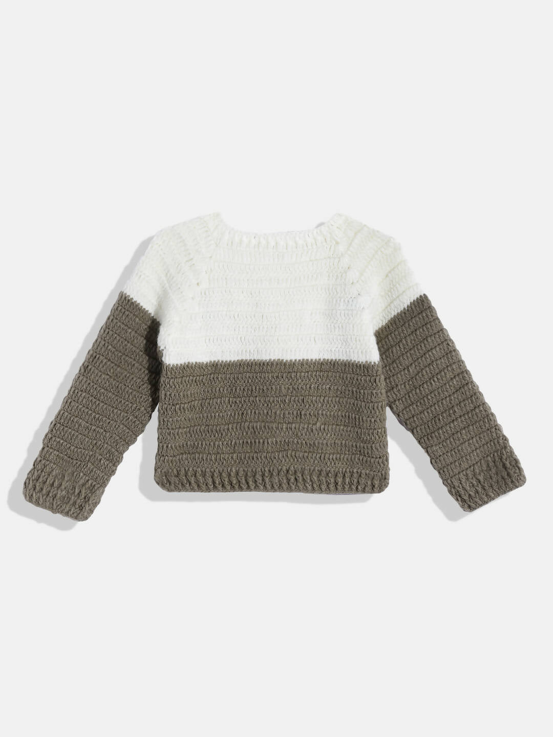 Chutput Kids Woollen Hand Knitted Full Sleeves Balloon Detail Colorblocked Sweater With Striped Cap - Brown - Distacart