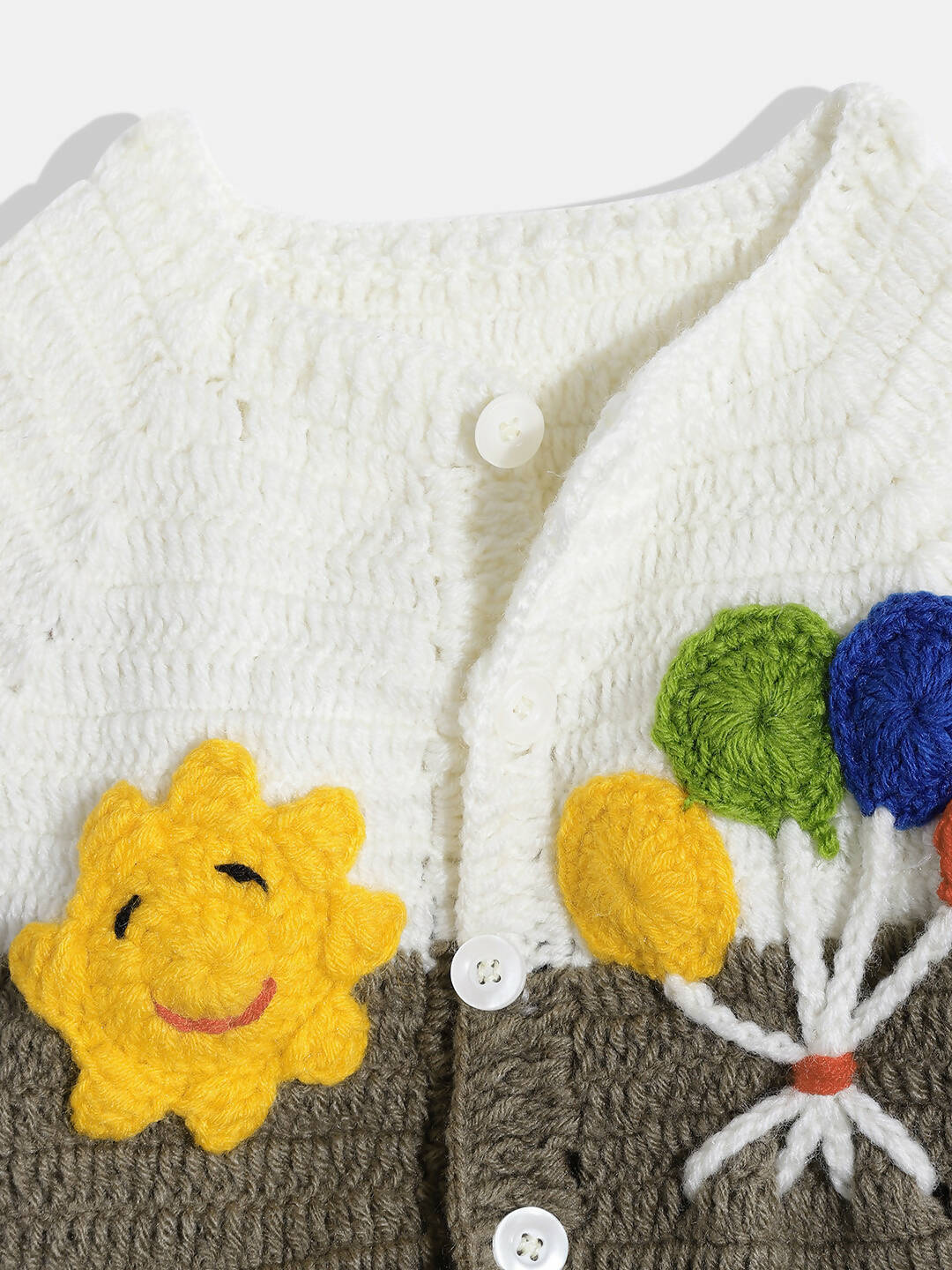 Chutput Kids Woollen Hand Knitted Full Sleeves Balloon Detail Colorblocked Sweater For Baby Boys With Striped Cap - Brown We bring you our design...
