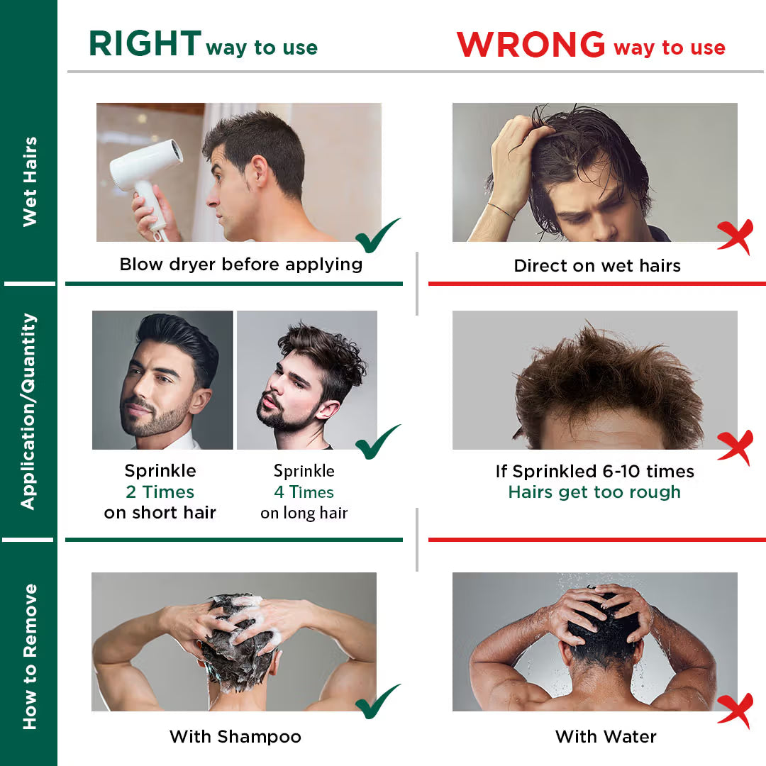 • 𝗛𝗔𝗦 𝗔 𝗦𝗧𝗥𝗢𝗡𝗚 𝗛𝗢𝗟𝗗: The powder holds your hair for 12 hours. It is water-resistant and works in all weather types. Moreover, it provides a matte finish. Better than hair gel for men.