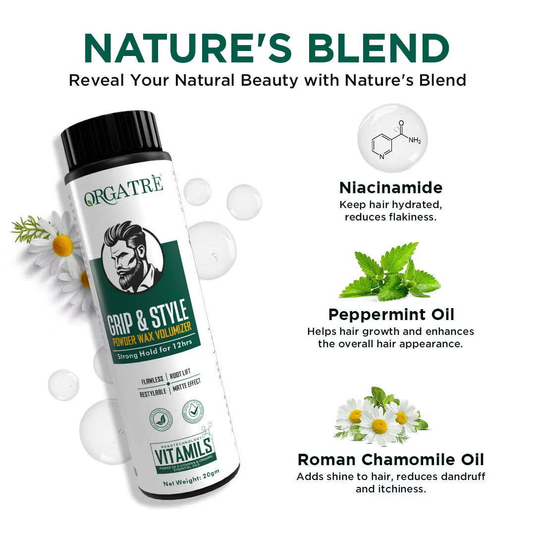 Orgatre Grip And Style Hair Volumizing Powder Wax, Strong hold For 12 Hrs Hair WaxAbout this Product:  𝐏𝐨𝐰𝐞𝐫𝐞𝐝 𝐛𝐲 𝐕𝐈𝐓𝐀𝐦𝐢𝐥𝐬, a combination of essent...