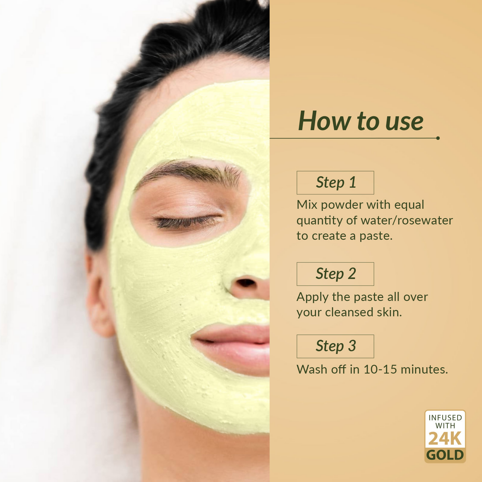 • Enriched with 24K gold, sandalwood, turmeric, and chickpea flour