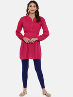 Souchii Women Navy Blue Solid Slim-Fit Ankle-Length LeggingsNavy Blue solid slim-fit ankle-length leggings have an elasticated waistband, and slip-...