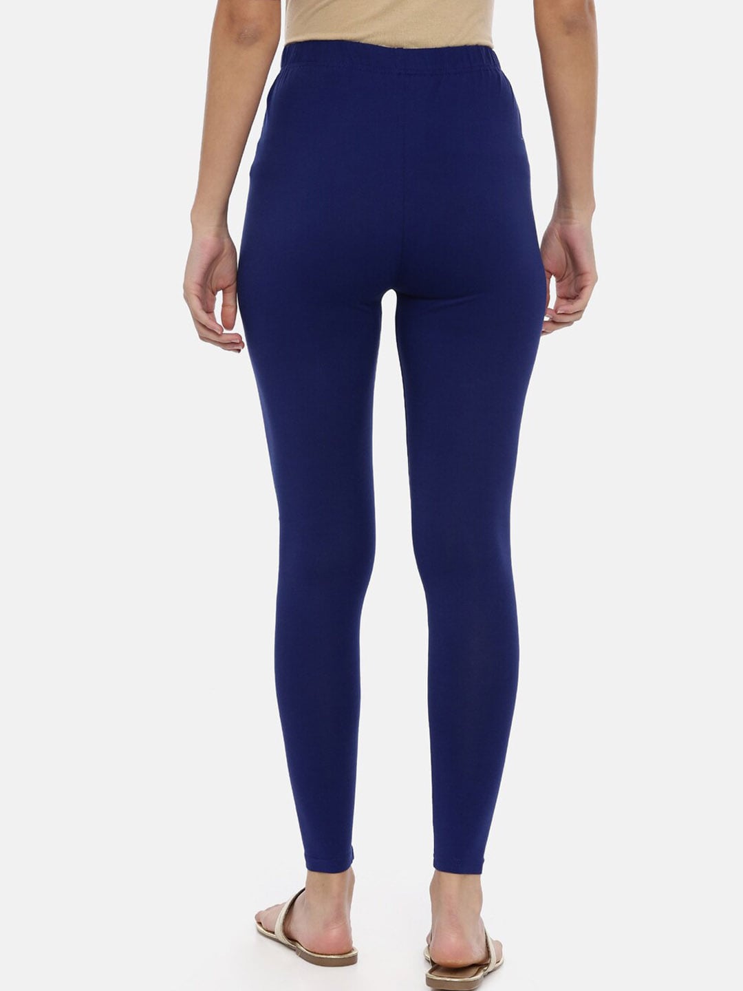 Navy Blue solid slim-fit ankle-length leggings have an elasticated waistband, and slip-on closure