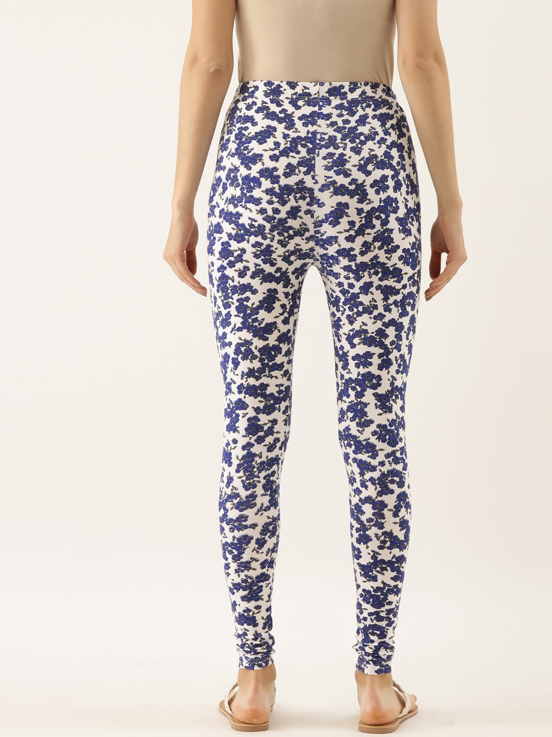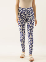 Souchii Women White & Blue Printed Slim-Fit Ankle-Length Leggings - Distacart