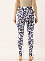 Souchii Women White & Blue Printed Slim-Fit Ankle-Length Leggings