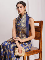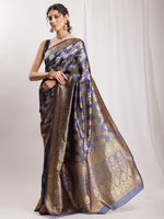 Janasya Navy Blue Silk Blend Floral Jacquard Saree
