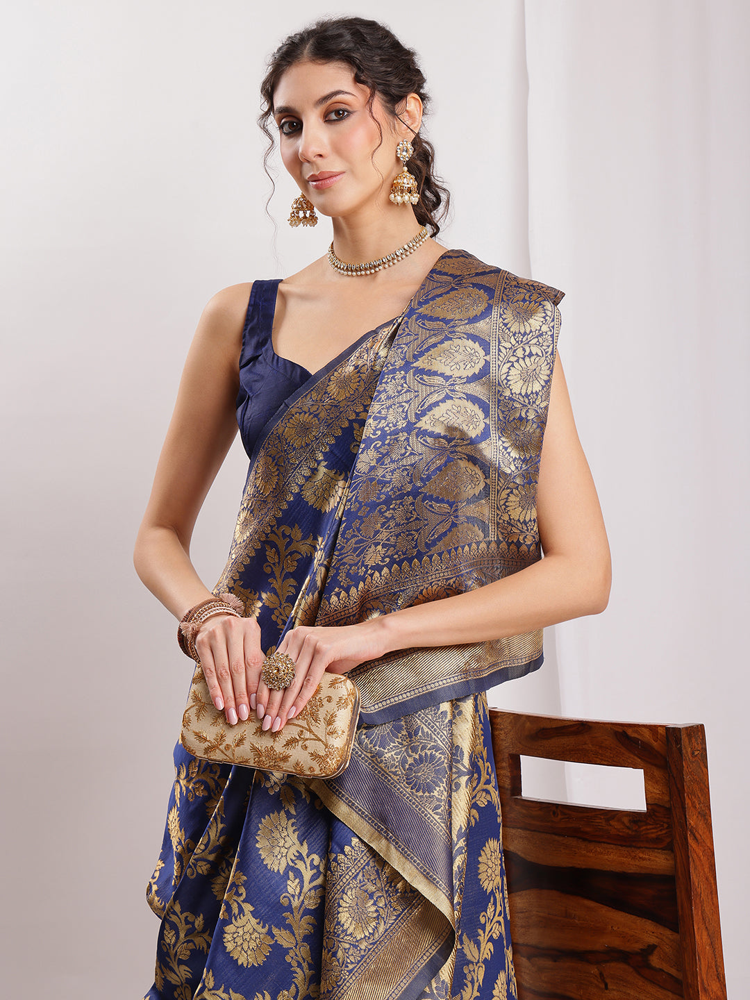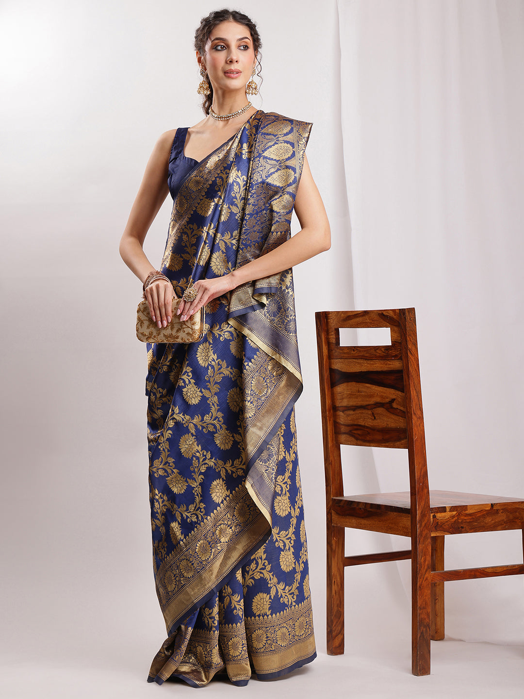 • Saree Color: Navy Blue