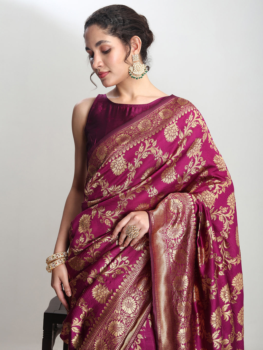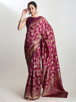 Janasya Purple Silk Blend Floral Jacquard Saree