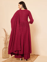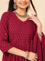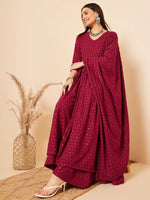 Inweave Women's Maroon Chikankari Long Anarkali Kurta Palazzo Set W Dupatta