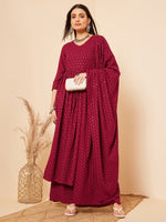 InWeave Women's Maroon Chikankari Long Anarkali Kurta Palazzo Set W Dupatta - S