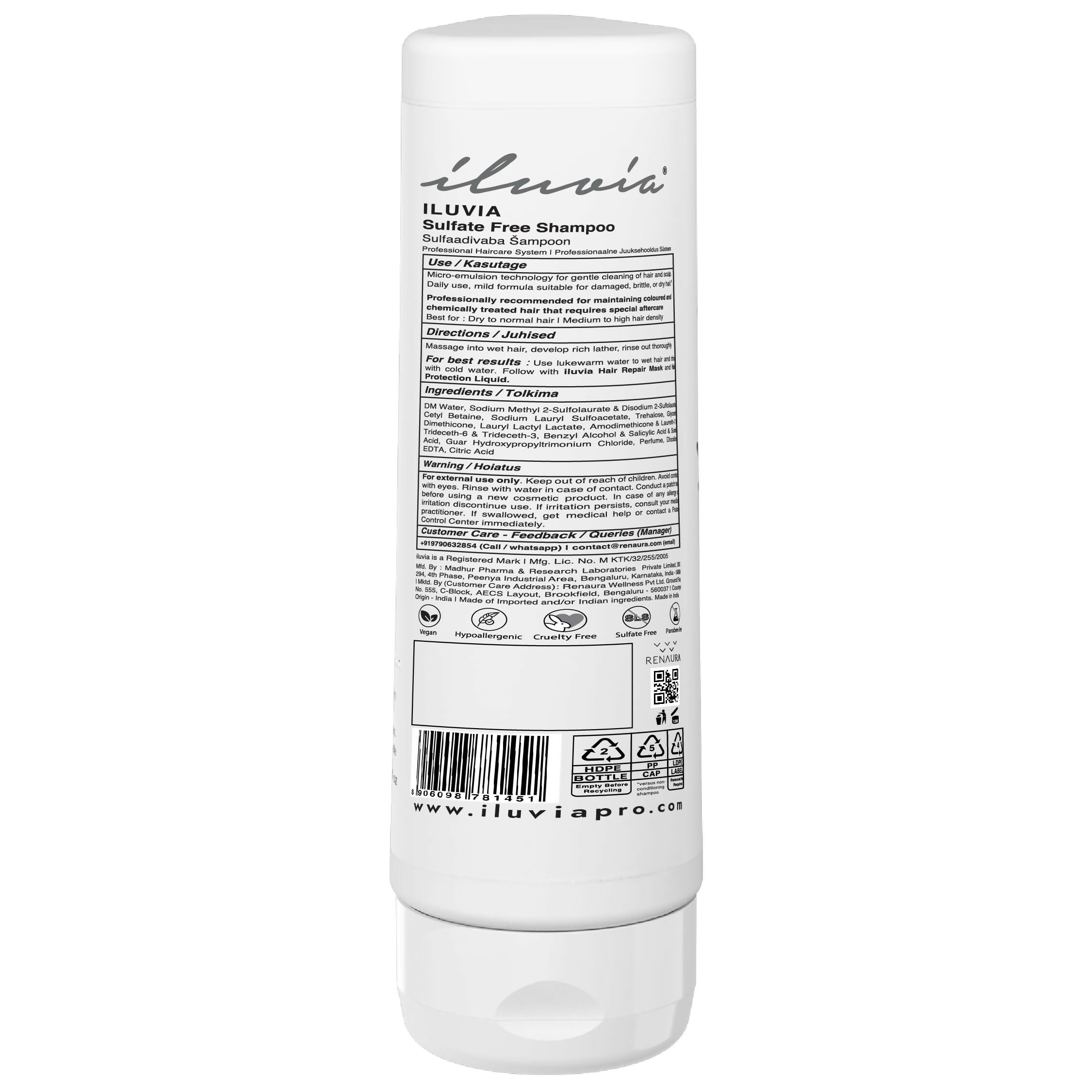 iluvia Professional Sulphate Free Shampoo About the Product:Protects damaged hair and sensitive scalp from dryness and dullness. Gently cleanses th...