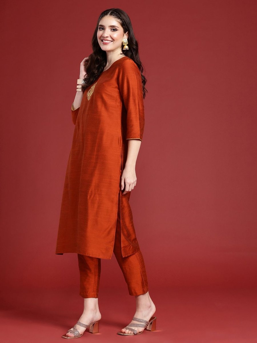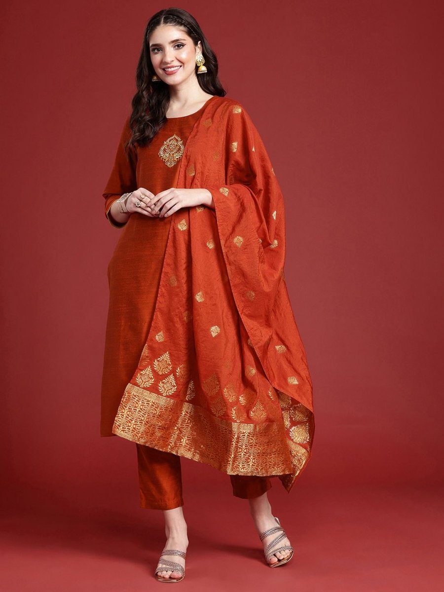 Anouk Women Ethnic Motifs Embroidered Regular Kurta with Trousers & With Dupatta Product Details Rust embroidered Kurta with Trousers with d...