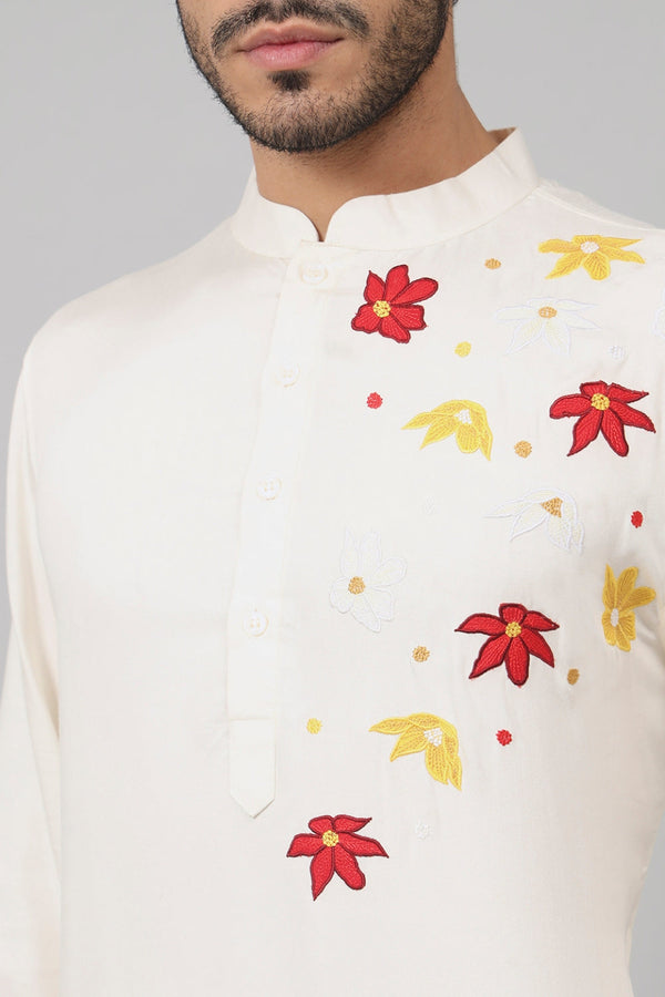 Cotton Kurta With Floral Embroidery Patch Embellishment by Hilo Design