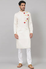 Cotton Kurta With Floral Embroidery Patch Embellishment by Hilo Design - Distacart