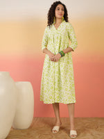 The Green White Rubber Print Flared Dress is a striking fusion of contemporary design and effortless elegance. Featuring a unique rubber print pattern in refreshing green and white hues, this dress exudes a modern, artistic appeal.