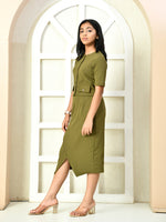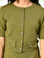 Myshka Girls Olive Solid Polyester Top With Skirt - Distacart