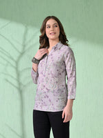 Myshka Women's Causal Printed Shirt Style Embroidered Top Lavender Color - Distacart