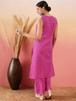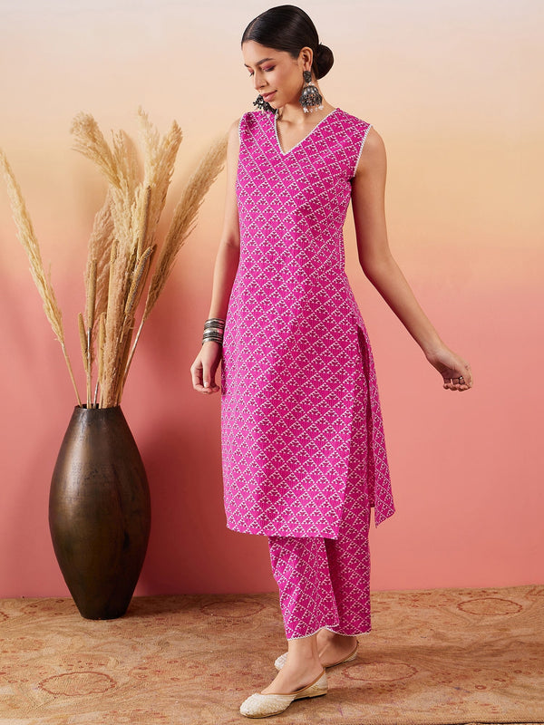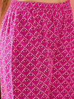 InWeave Pink Pyramid Kantha V Neck Lace Work Kurta Palazzo Set