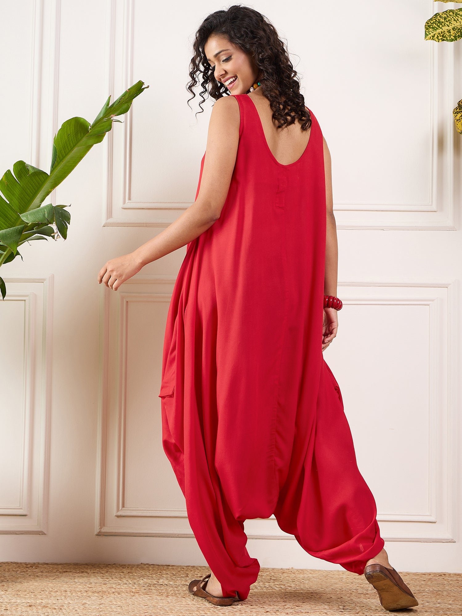 InWeave Red Round Sleeveless Jumpsuit - Distacart