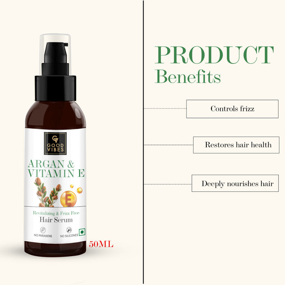 Good Vibes Argan + Vitamin E - Revitalizing + Frizz Free Hair Serum - 50 ml