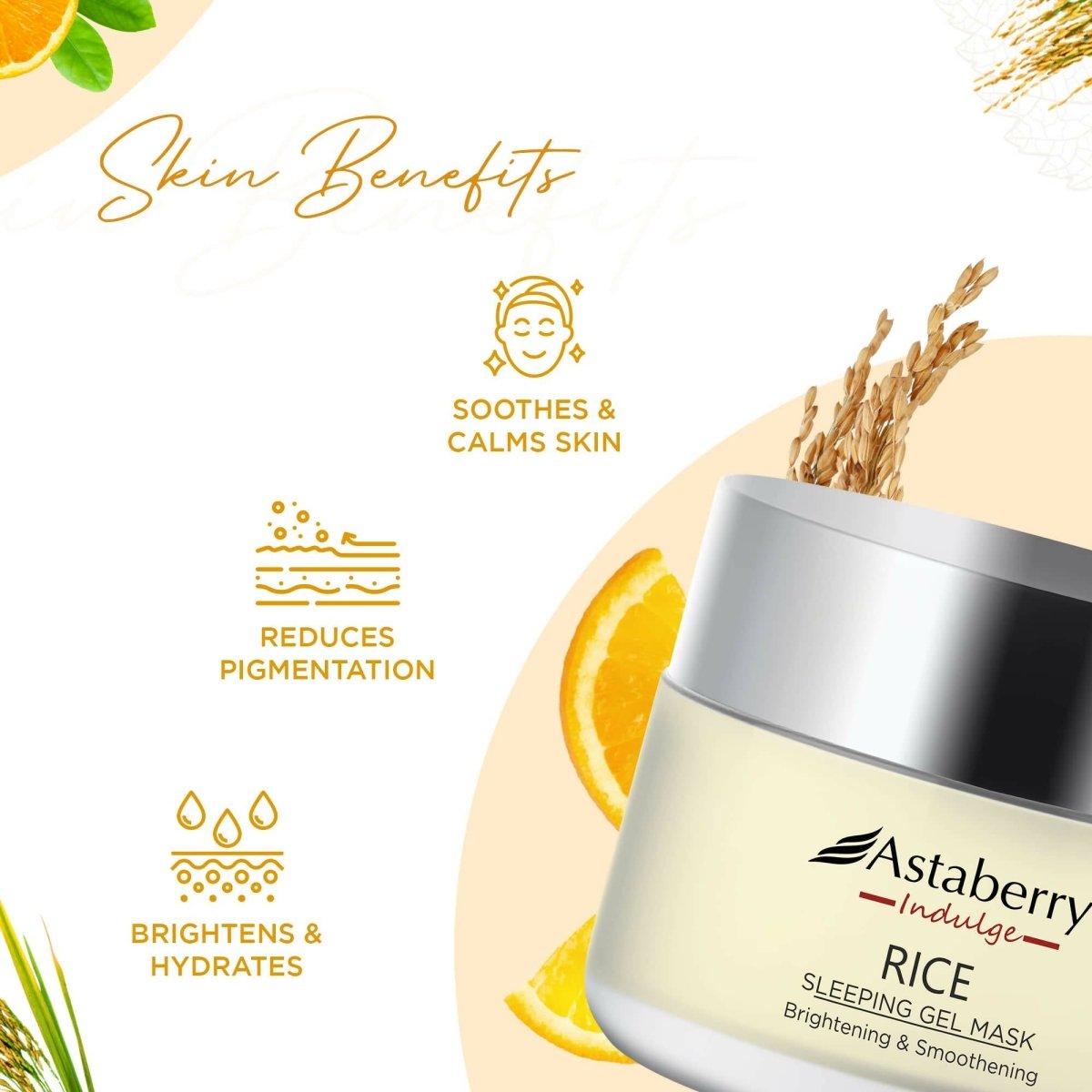 Astaberry Indulge Rice Sleeping Gel MaskAbout the Product:Astaberry Indulge Rice Sleeping Face Mask contains Fermented rice water which is an integ...
