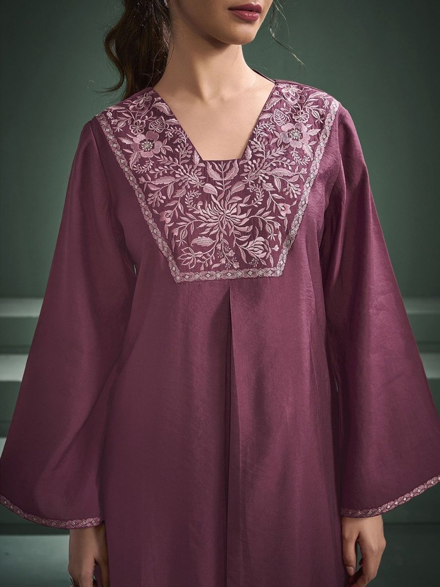 Mauve and GoldToned embroidered Kurta with Trousers & dupatta