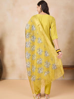 Anouk Yellow Floral Yoke Design Thread Work Chanderi Silk Kurta With Trousers & Dupatta