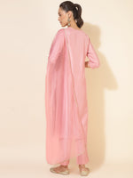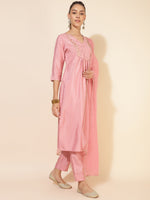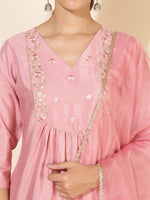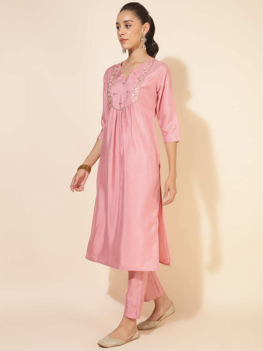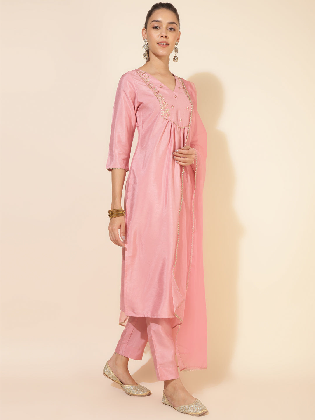 Janasya Pink Crepe Silk Yoke Embroidery Set